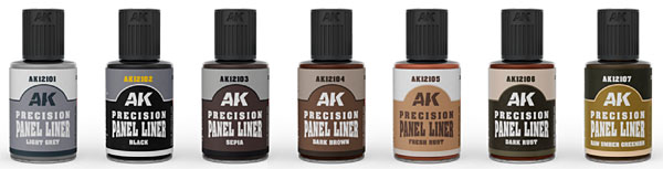 グレー系の表面に墨入れ(ピンウォッシュ)を施して、パネルラインやディティールを強調するための塗料です。