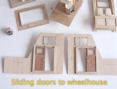 | 操舵室のドア ドアは引き戸になっていて、実物同様に開閉します。 |